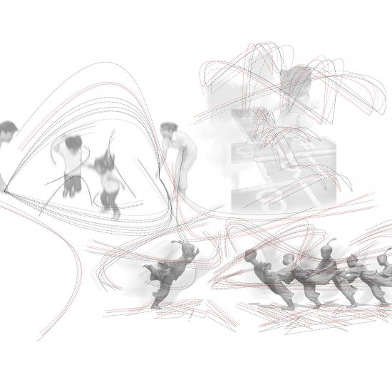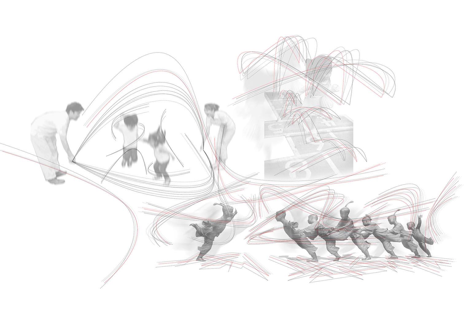 Our response to the brief was simple: to celebrate the movement and the of the children that were once the occupants of this building. We have lined the interior with an inner second skin of translucent membrane that would be animating the reminisce of the children’s movement trajectories. The complex geometries of the second skin may not be achieved without computational design which would allow every single piece of the fabric to be precisely trimmed and tailored.