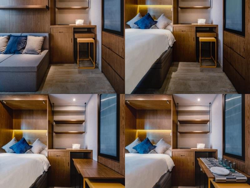 Our client had bought two old 8 stories buildings (around 50 years of age); one at Ma Tau Wai and another at Mong Kok – both aged and weathered areas in Hong Kong. After 3 months of market research, we learned that there is a service gap in the housing market for millennials who are gaining moderate successes in life. Between 2014 to 2018. There were an influx and abundances of “co-living” / dormitory spaces in Hong Kong, i.e. a bunk bed space with shared toilets and bathroom. Each of these bed space will cost around 1000 USD. What if we provide quality, en-suite small serviced apartments, for 1,300 USD? Will there be a demand for these? Someone with an average monthly salary of 40,000 HKD (5,000 USD, which is not bad) will need 16 years to pay-off the cost of an 500sq.ft (50sq.m) apartment; providing that there is no inflation, the housing prices will not inflate and this person does not need to eat or to be entertained for 16 years. We must provide good quality dwellings for the young who are ambitious and can “get there”. All they need are opportunities and a good resting space that they can afford. Our “design” is more than a pretty dwelling: Oootopia allowed tenants choose the services that they will be needing (e.g. daily laundry, refuse collection etc.). Choices are what we are advocating; the young must grow with choices; making choices also help someone to grow.