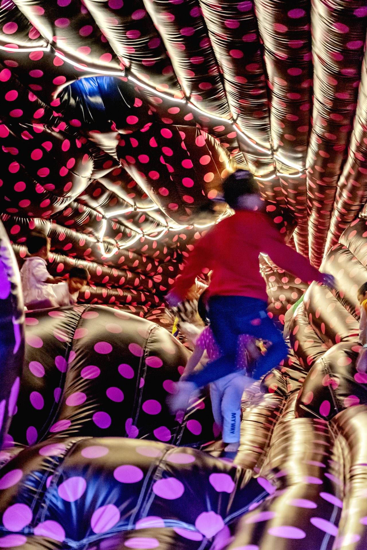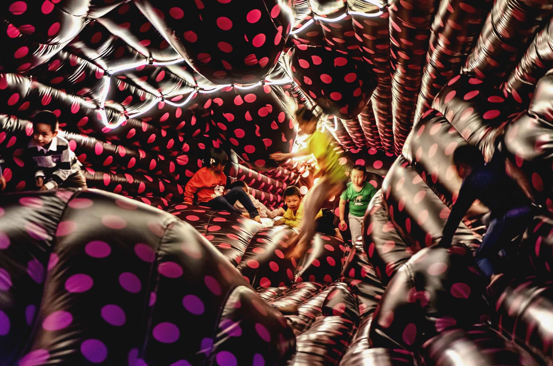 Our visitors may bounce, slide, prank with each other within our Soft-spaces. Young visitors are encouraged to take risks at these safe environments and create adventures. Grown-ups are very likely to find themselves to be children again. We hope that our Soft-spaces art experiences may allow anyone at all ages to relax and to be joyful.